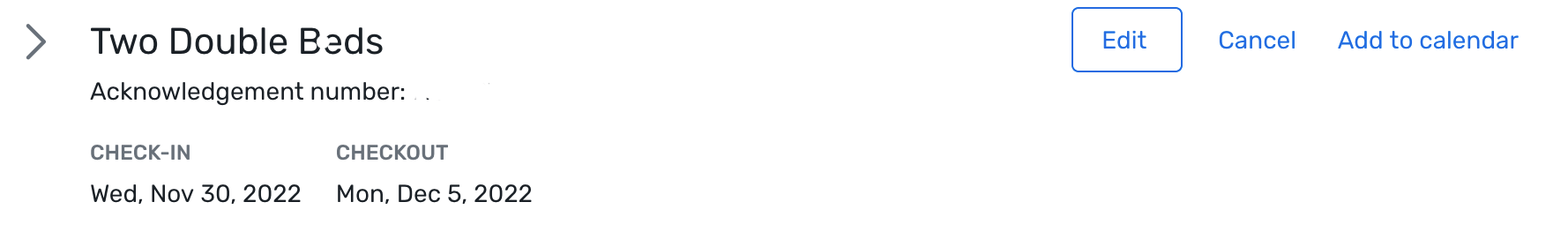 2. Your reservation information is now displayed. Scroll down to the room description and click the "Edit" button.